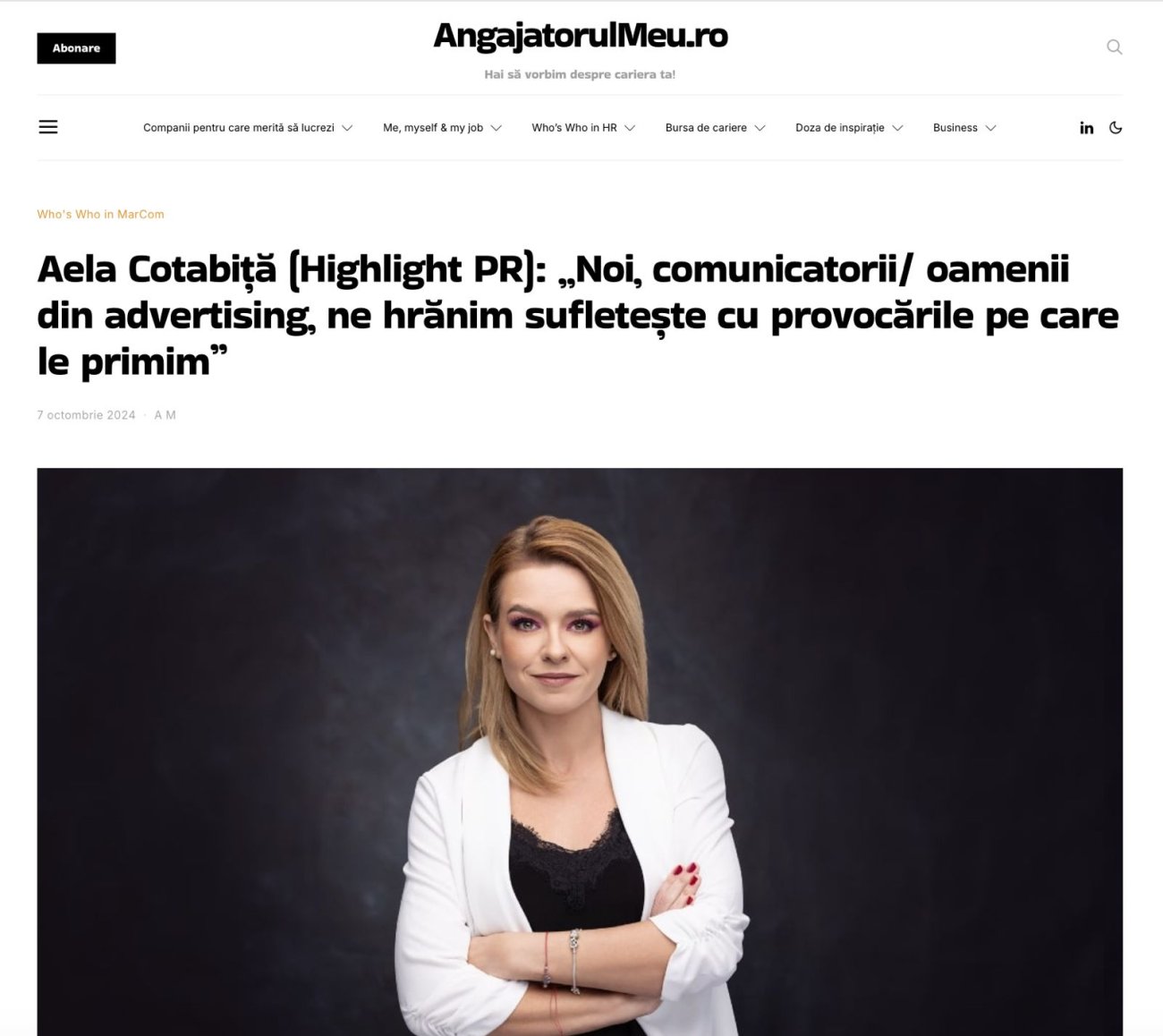 In January, Aela Cotabiță took over the leadership of the independent communication and public relations agency Highlight PR.