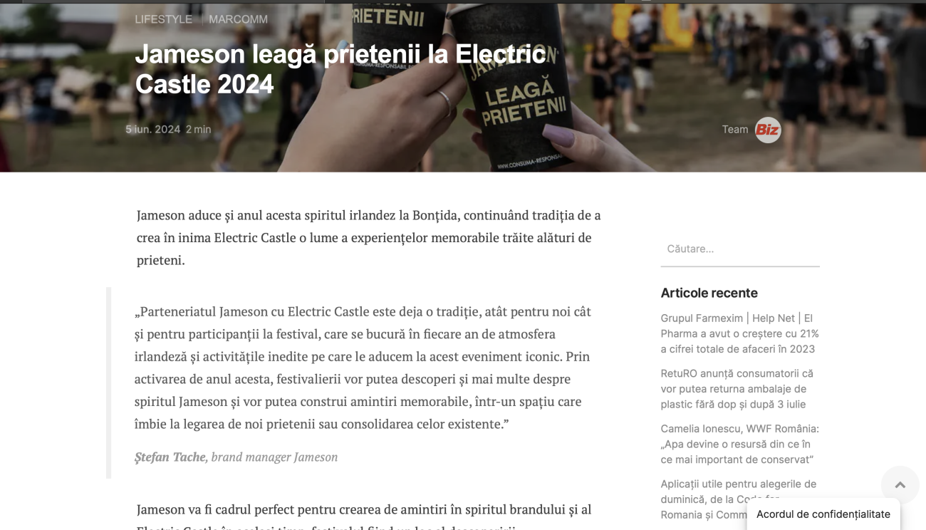 Rooted in the idea that music brings people together, the activation and its communication campaign reinforced Jameson’s role in creating fresh, meaningful brand experiences that turn moments into friendships, right in the heart of Electric Castle.